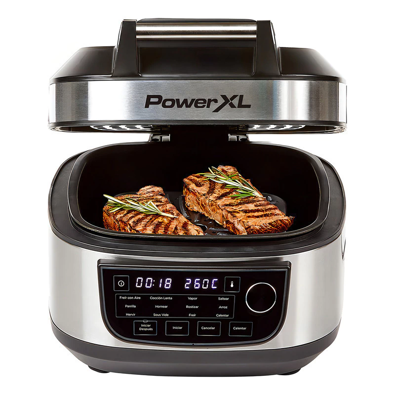 - Funciones: 12 funciones automáticas: freír con aire, Arroz, Asar, Dorar, Freír, Hervir, Hornear, Saltear, cocción lento, sous vide y calentar, vaporiza.