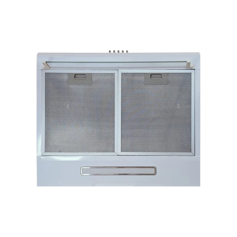 Purificador de cocina de 60 cm de ancho con cuerpo en color blanco. Elegante y atemporal. Potente poder de succión de 3 velocidades para eliminar de manera eficiente el humo y los olores de la cocina. Adaptable para instalación con o sin salida al exterior. Luz LED incorporada ilumina su espacio para cocinar. Deflector de vidrio como parte del diseño que ayuda a evitar que el humo o vapor se escape de la habitación. Cuenta con 2 filtros de aluminio de 5 capas, fáciles de limpiar, aptos para lavavajillas
